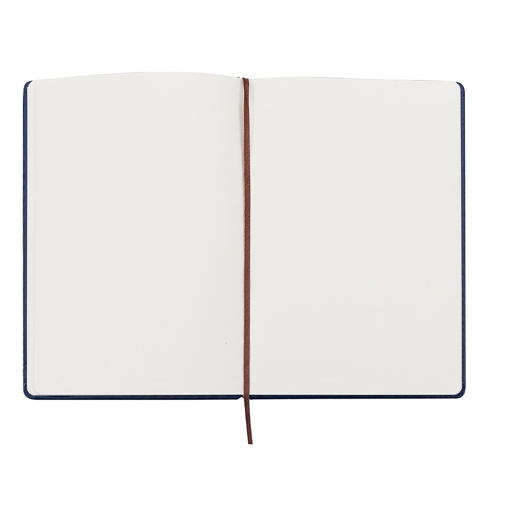 Caderneta tipo moleskine couro sintético, marcador de página em cetim e fita elástica para fechar. Contém aproximadamente 78 folhas amareladas sem pauta.