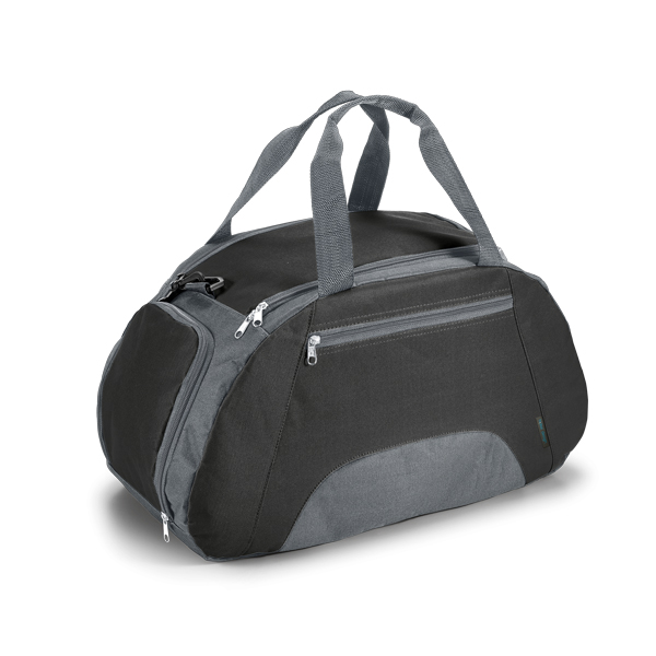 Bolsa esportiva produzida em poliéster 600D, com divisória interior para roupa suja ou tenis, bolso frontal e fundo com placa semi-rígida, medidas 52 x 30 x 25,5 cm. Gravação serigrafia.