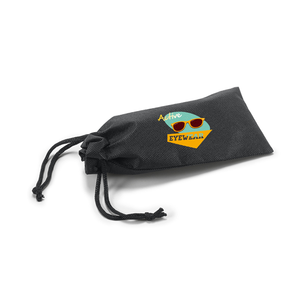 Bolsa para óculos produzida em TNT Non-woven: 80 g/m², Medidas 90 x 200 mm. Gravação serigrafia em 1 cor.