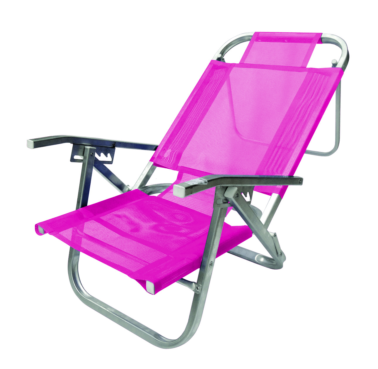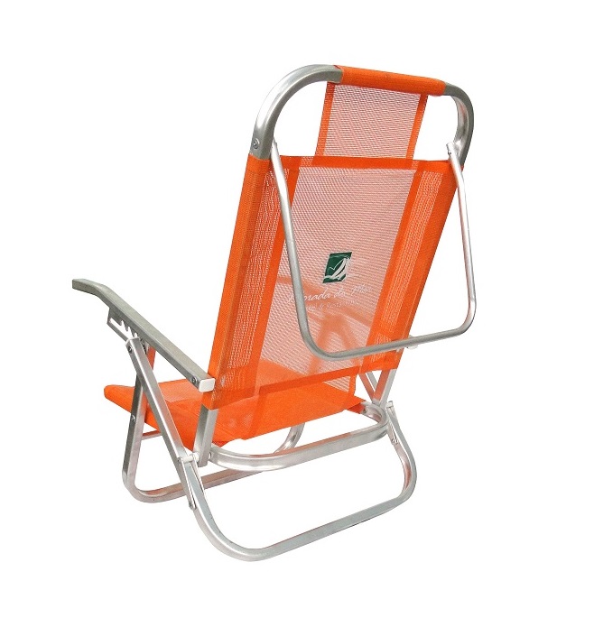 Cadeira de praia 5 posições modelo copacabana, em alumínio, capacidade 120 kgs, assento com tela sannet. Gravação serigrafia em 1 cor no bolso traseiro.