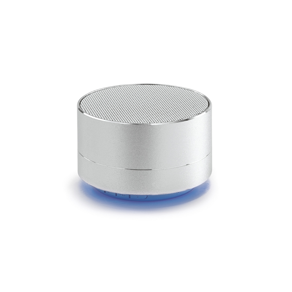 Caixa de som com microfone em alumínio, possui transmissão por bluetooth e leitor de cartões TF, autonomia até 5 h, função para atender chamadas, controle de volume, conexão à playlist do dispositivo móvel e rádio FM. Incluso cabo micro USB para carregar medidas ø71 x 42 mm. Gravação a laser.