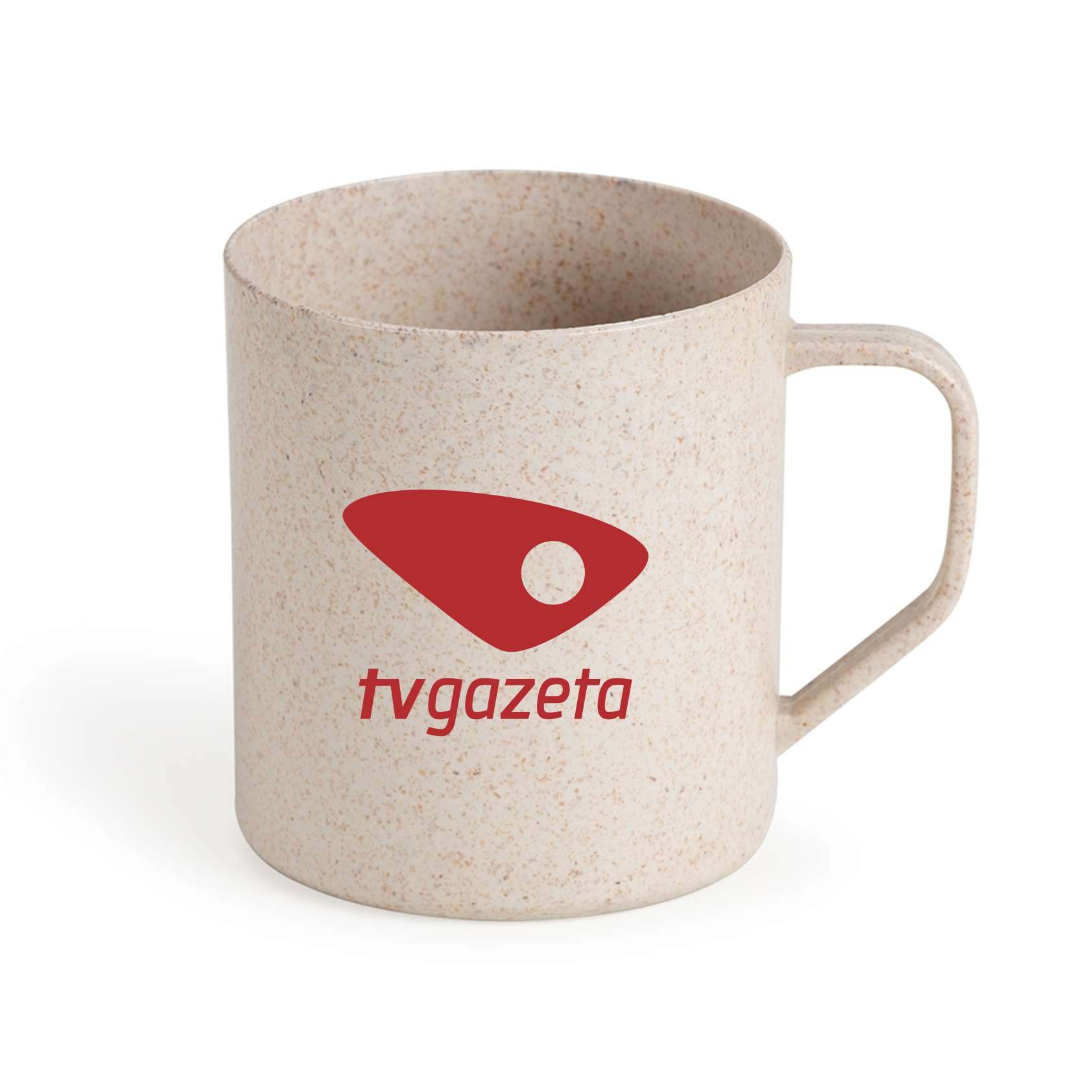 Caneca produzida de plástico e fibra de arroz com capacidade de 400ml,
