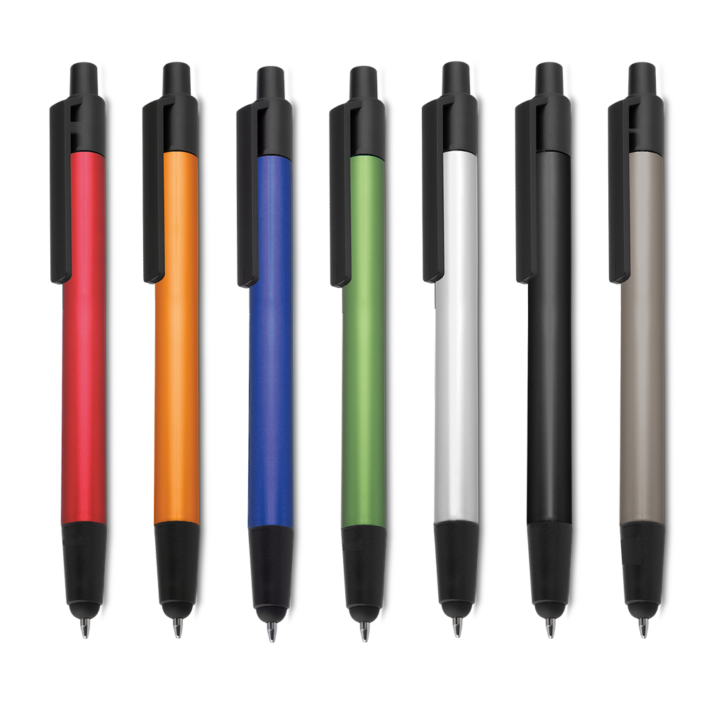 Caneta esferográfica em metal com ponta touch escrita em azul