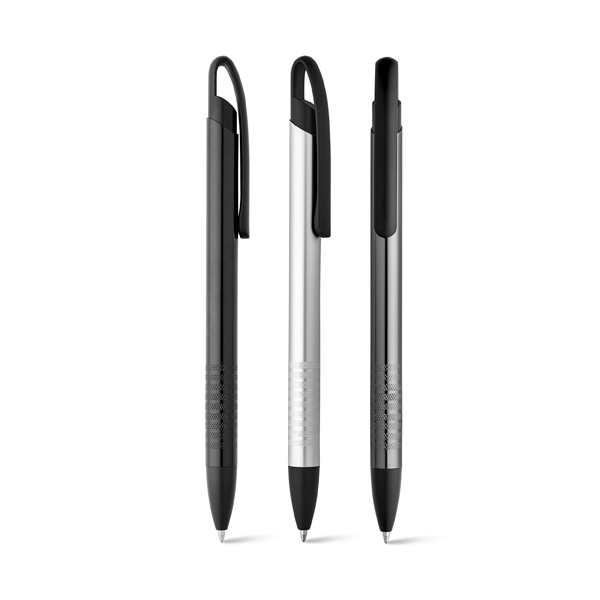 Caneta Esferográfica com corpo em alumínio, e clipe flexível. 1,5km de escrita, Gravação a laser.
