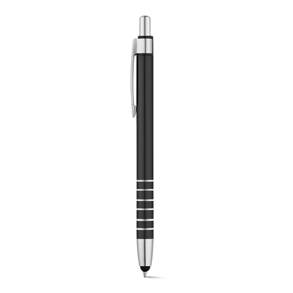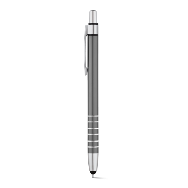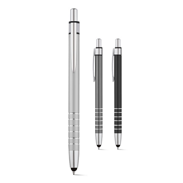 Caneta esferográfica com corpo em Alumínio e ponteira touch, medidas ø 9 x 138 mm. Gravação a laser.