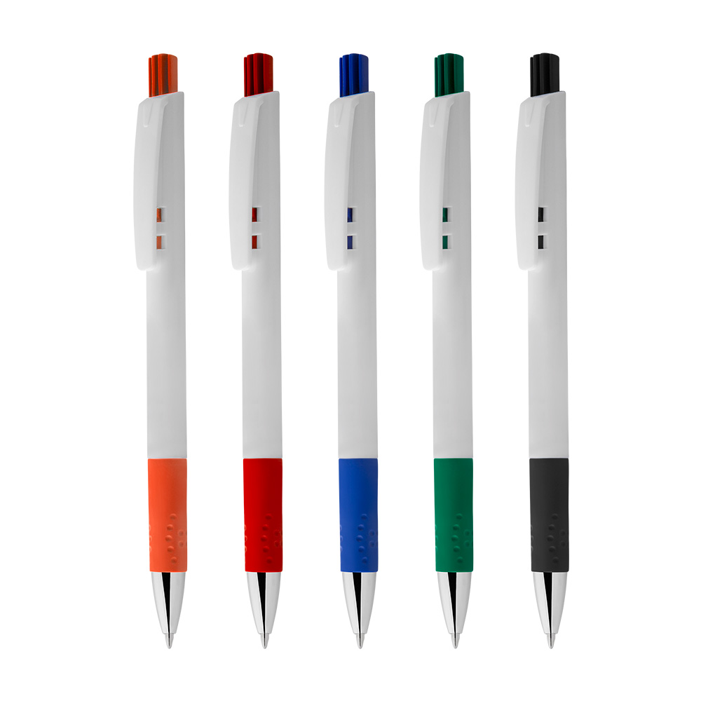 Caneta plástica com grip esferográfica retrátil escrita em azul