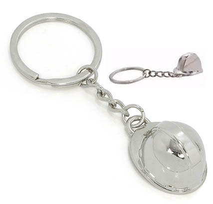 Chaveiro em metal modelo Capacete com mosquetão. Acabamento em alto e baixo relevo com logo esmaltada (colorida).