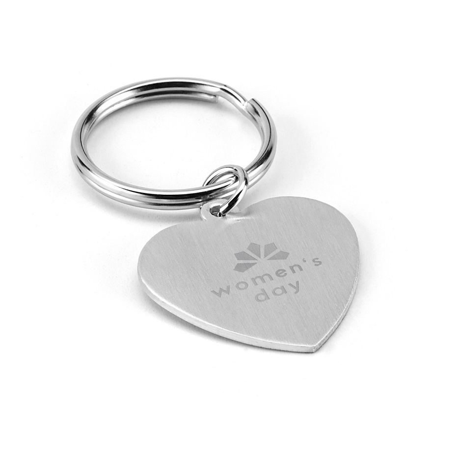 Chaveiro formato de coração em alumínio, medidas 36 x 34 x 2 mm. Gravação a laser.