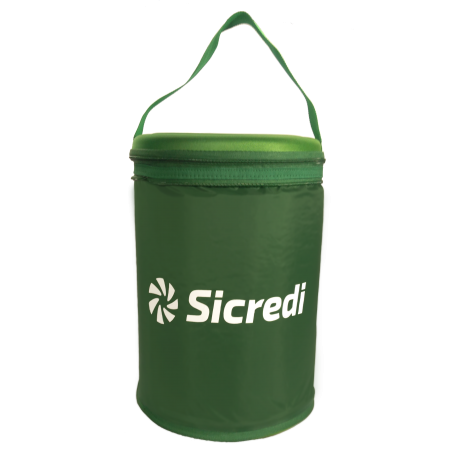 Cooler dobrável com fundo e Tampa confeccionado em EVA termo moldado, corpo confeccionado em Nylon 70 emborrachado, fechamento com zíper n 08, Alça de Mão, isolante Térmico Espuma pack 4mm. Forro Interno Banner 0,30 espelhado branco, medidas 39 x 27 x 27, e capacidade 28 litros. Impressão serigrafia.