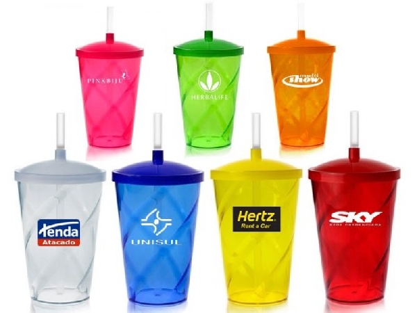 Copo espiral com tampa e canudo, Capacidade: 700 ml, Dimensão: 27 x 21 cm. Gravação serigrafia.