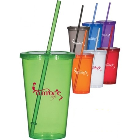 Copo com Canudo e tampa modelo Mega Drink 550 ml. Gravação serigrafia.