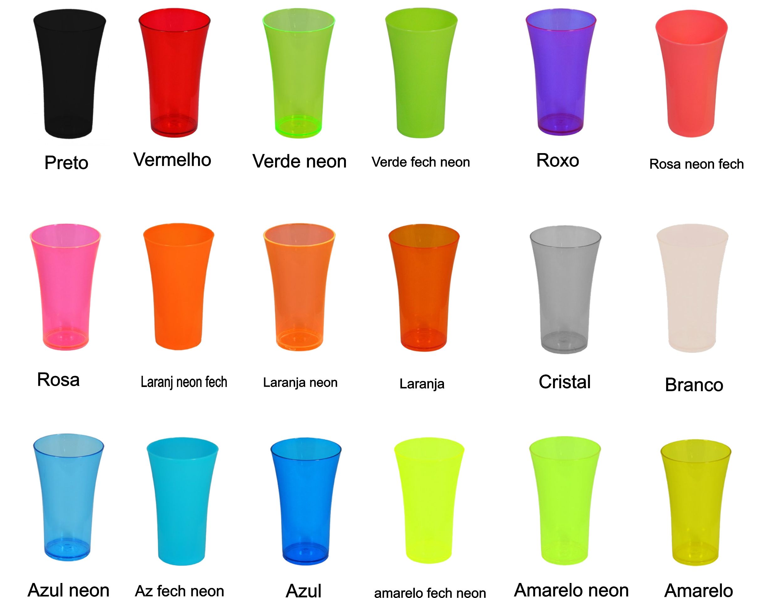 Copo modelo Space capacidade 400 ml, transparente ou colorido, Medidas: 8,5 cm de diâmetro (boca), 5,8 cm de diâmetro (base) e 14,2 cm de altura. Gravação serigrafia.