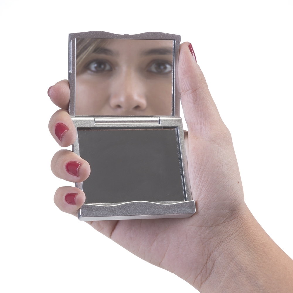 Espelho retangular duplo sem aumento, material em plástico resistente com superfície ondulada.