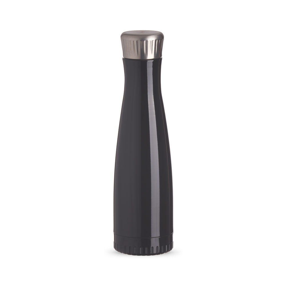 Garrafa de inox 750ml com pintura colorida e tampa rosqueável, não é térmica.