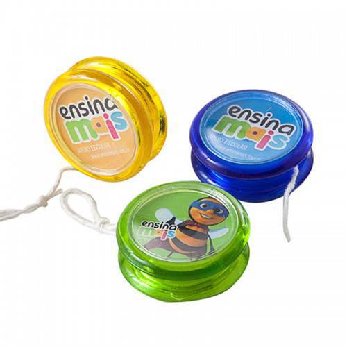 Ioiô plástico promocional, medidas 5,5 cm de diâmetro. Impressão em policromia.