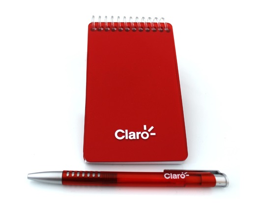 Kit incluso bloco de anotações com capa plastica, e caneta esferográfica com corpo plastico. Gravação serigrafia em 1 cor na capa do bloco e caneta.
