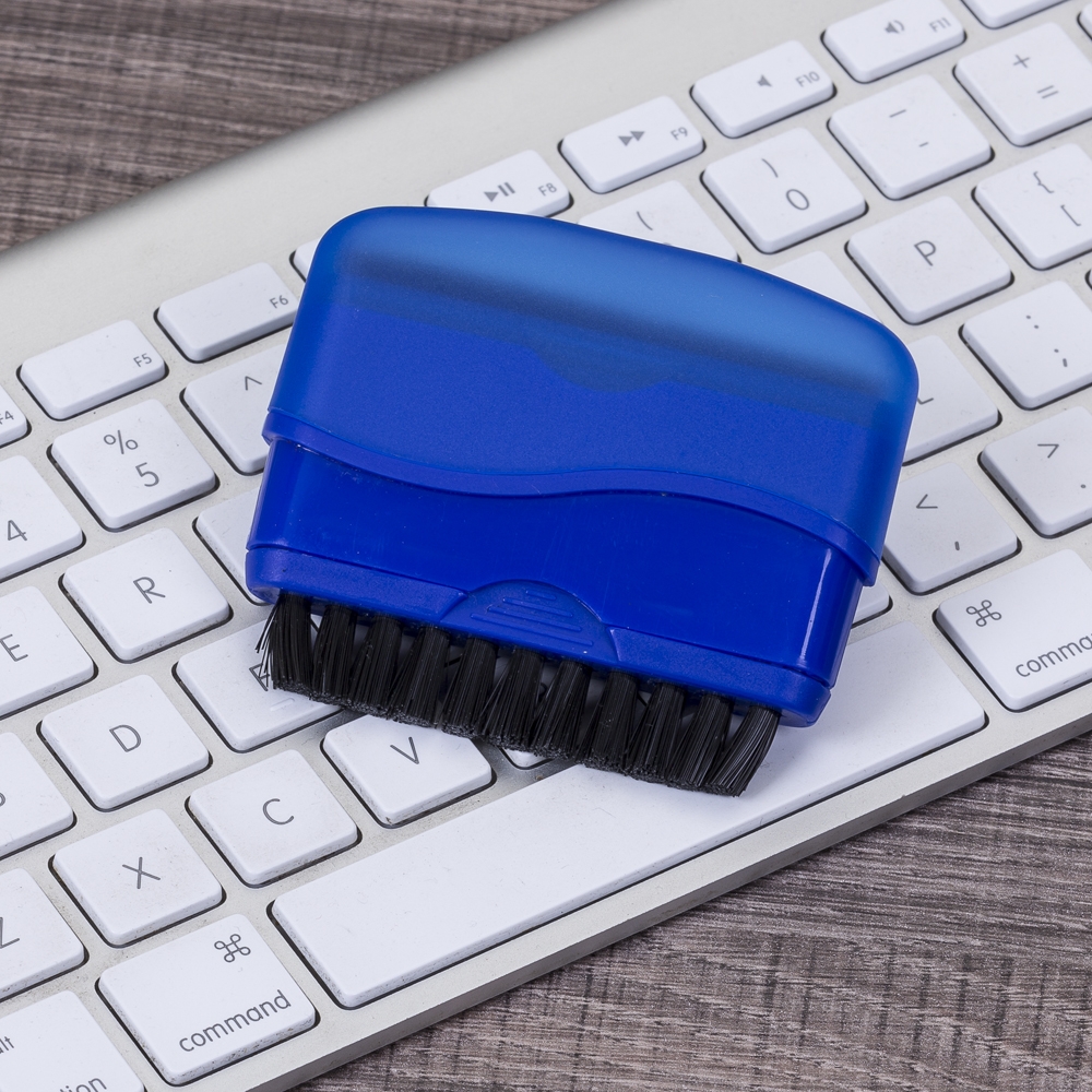 Limpador de teclado e tela de computador,contém tampas de proteção para as cerdas e a borracha de limpeza, material plástico resistente, medidas:6,5 cm x 7,5 cm. Gravacao serigrafia em 1 cor.