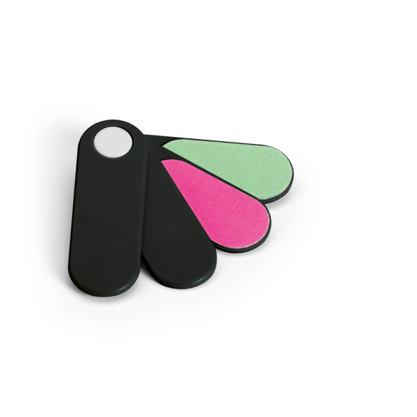Kit com 4 lixas produzido em plástico, medidas 22 x 65 x 17 mm. Gravação serigrafia em 1 cor.
