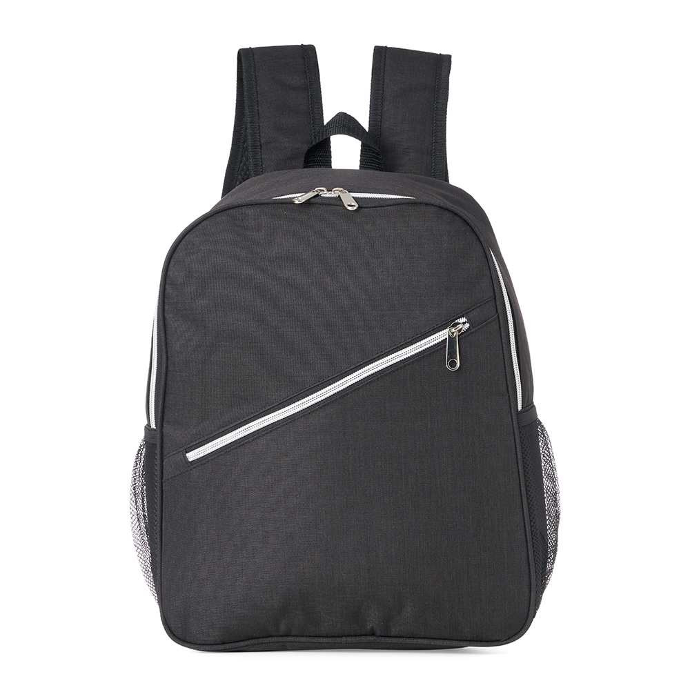 Mochila térmica com capacidade de 15 litros, compartimento principal com revestimento térmico aluminizado. Contém compartimento frontal, bolsos laterais de nylon, alça de mão em nylon e alças para as costas ajustáveis com revestimento espumado. Gravação serigrafia em 1 cor.