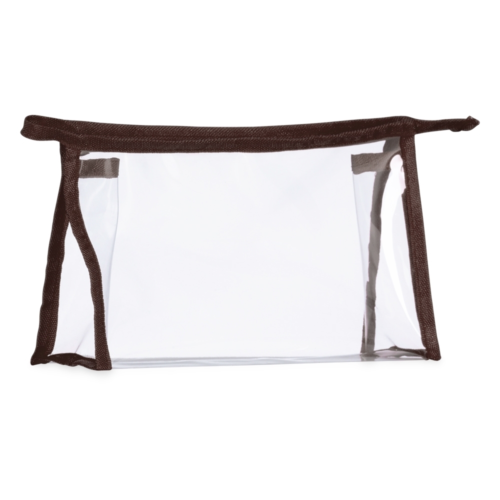 Necessaire plástica transparente com detalhe colorido em nylon. Medidas: Altura : 13,8cm Largura : 22cm Profundidade : 6,3 cm