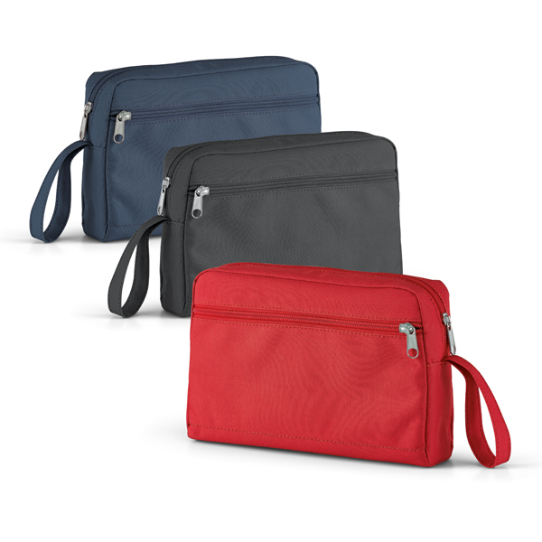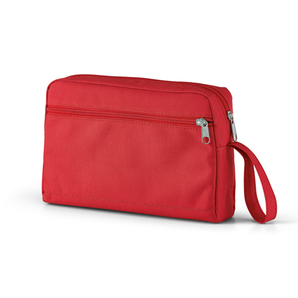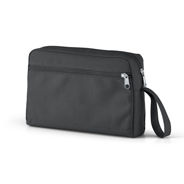 Necessaire em Oxford com acabamento interno, fechamento com zíper e alca de mão., medidas 240 x 160 x 55 mm. Gravação serigrafia em 1 cor.