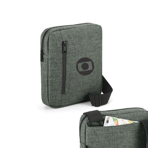 Pasta à tiracolo em poliéster 600D de alta densidade, compartimento forrado com divisória almofadada para tablet 9.7” e diversos bolsos interiores, parte posterior almofadada com bolso frontal e bolso posterior, alça de ombro ajustável. 220 x 270 x 45 mm. Gravação serigrafia em 1 cor.