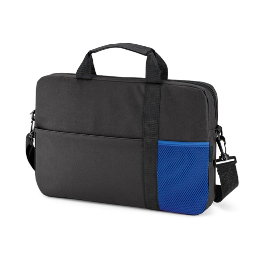 Pasta para notebook produzida em poliéster 600D compartimento forrado com divisória almofadada para notebook até 15.6”. Possui bolso frontal com fecho e bolso em tela e alça de ombro ajustável com reforço, medidas 400 x 290 x 50 mm. Gravação serigrafia em 1 cor.