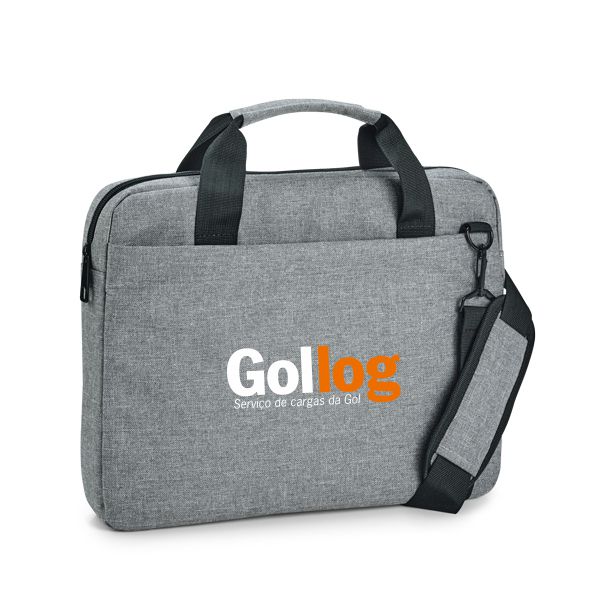 Pasta para notebook produzida em poliéster 600D de alta densidade compartimento forrado e almofadado, com divisória para notebook até 14”. Bolso frontal e alça de ombro ajustável, com reforço almofadado. Possui Alça para transporte em trolley, medidas 370 x 280 x 50 mm. Gravação serigrafia.