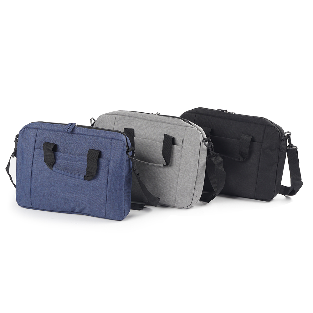Pasta p/ notebook tecido poliester, bolso lateral, porta notebook, toda forrada, alça de mão e ombro, medidas 40x29x5cm. Gravação serigrafia em 1 cor. * Mínimo 50 unidades.