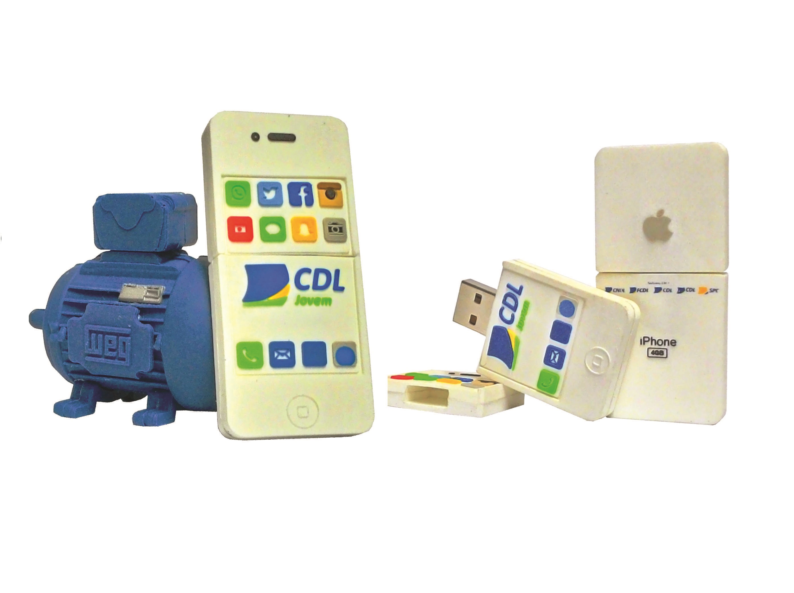 Pendrive 3D modelo estilizado emborrachado, capacidade 4/8/16 Gb. Impressão em alto e baixo relevo com cor. Medidas e modelo a definir.