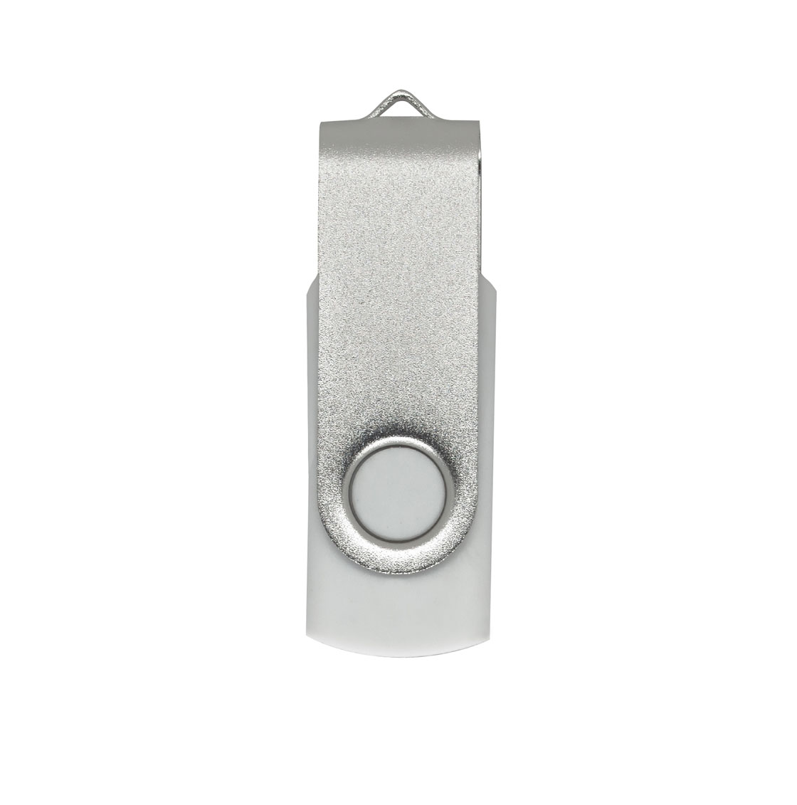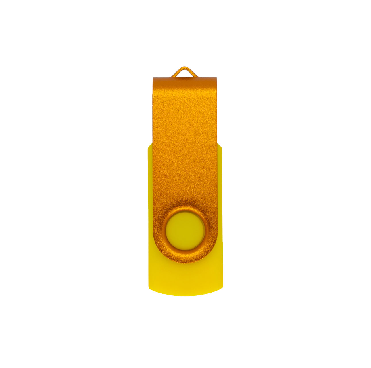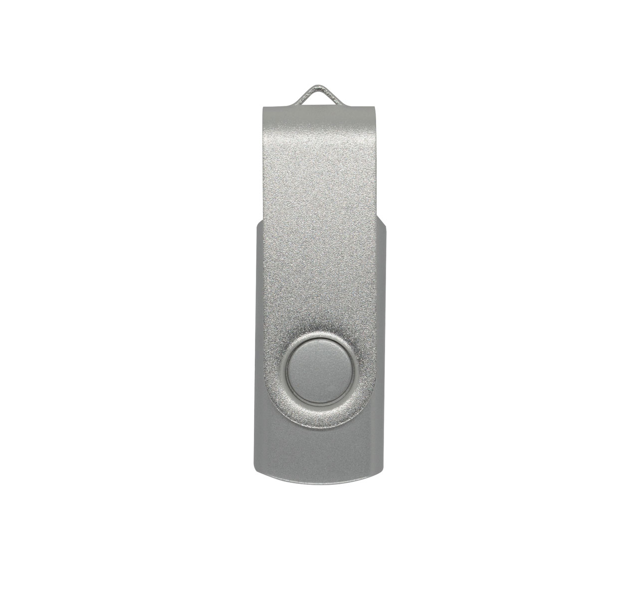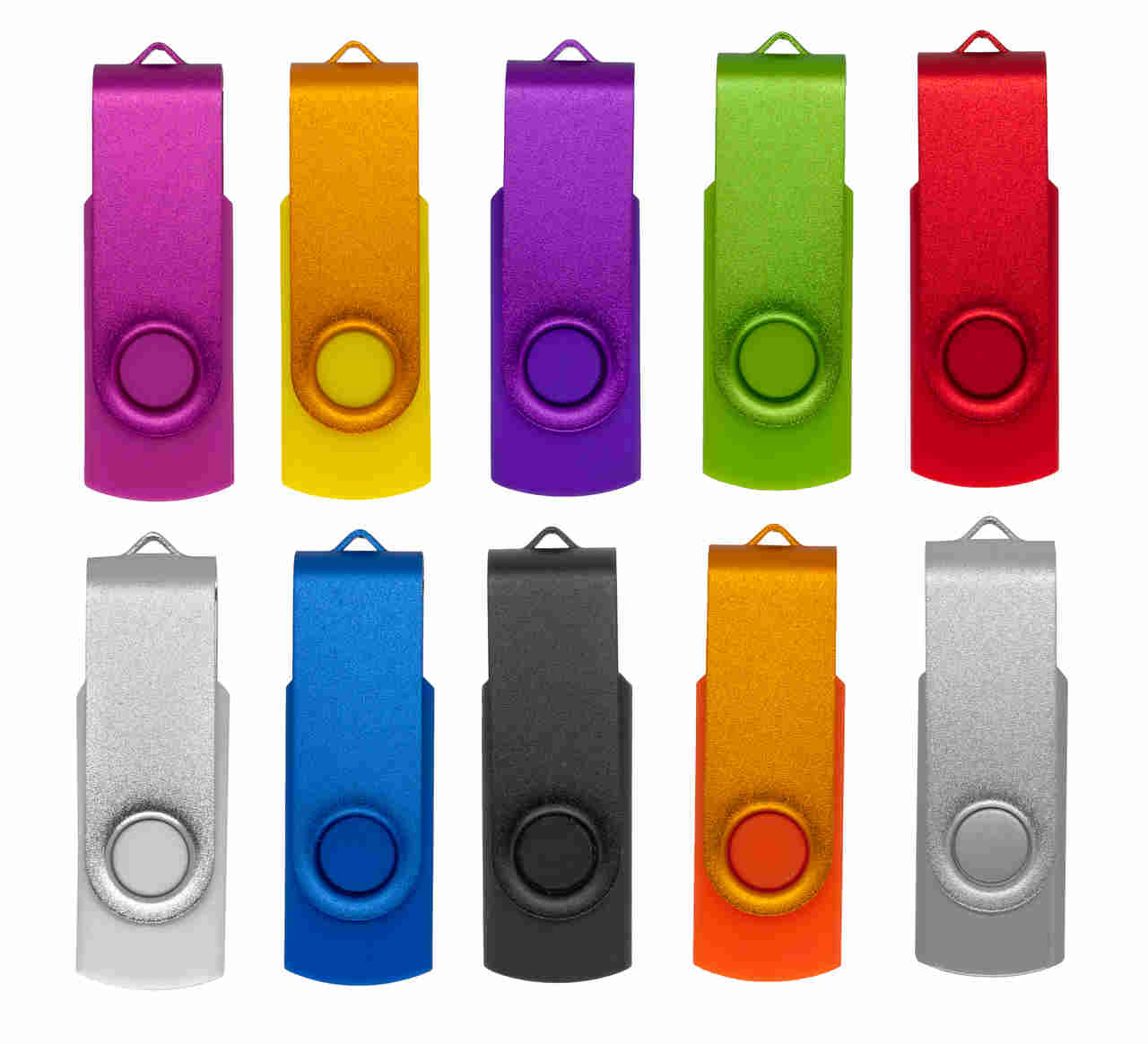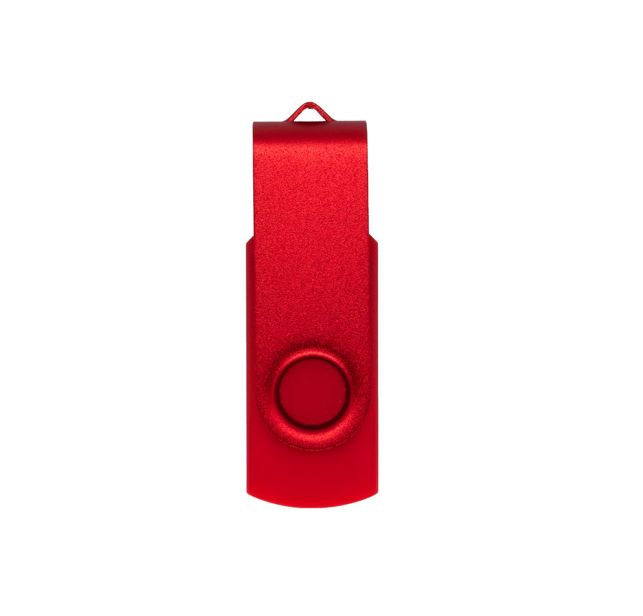 Pen drive de metal giratório com detalhes coloridos, capacidade 8 Gb, parte interna em plástico resistente. Possui uma “argola” na parte em metal prata que poderá ser utilizado para colocar algum cordão, medidas 5,8 cm x 2 cm. Gravação a laser.