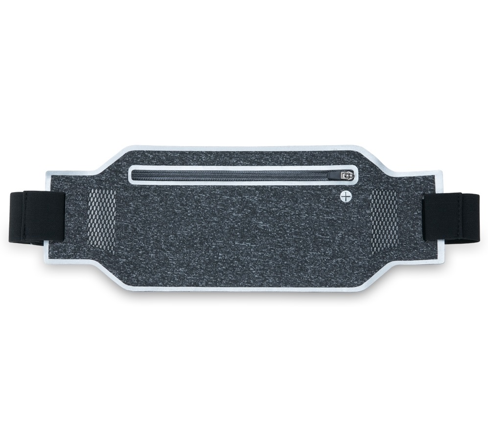 Pochete anti-furto esportiva. Confeccionada em lycra impermeável, a pochete possui um formato slim que permite a utilização por dentro da roupa sem causar volume, aumentando a possibilidade de não ter seus pertences furtados. Ideal para práticas esportivas, a pochete possui saída para fone de ouvido, cinta elástica ajustável com fivelas, saídas laterais para circulação de ar e contornos reflexivos.