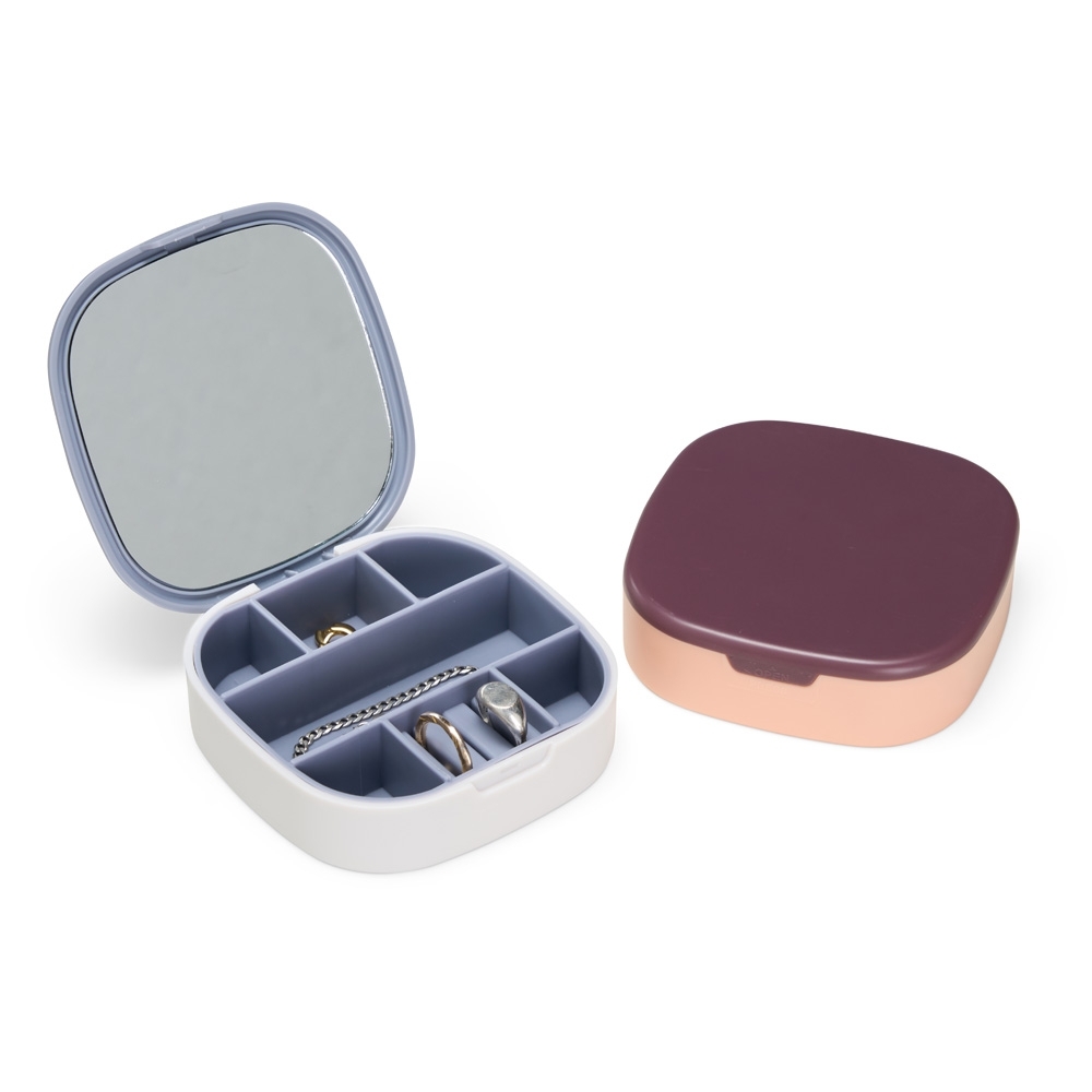 Descrição: Nosso Porta-jóias organiza seus acessórios de forma prática e compacta. Produzido em plástico, é a escolha ideal para manter anéis, brincos, batom e pulseiras sempre acessíveis. Com 7 compartimentos estratégicos para guardar tudo, feitos em material macio e emborrachado, removíveis para facilitar a limpeza, ele também conta com um espelho na tampa, facilitando na hora de montar looks com as jóias. Perfeito para quem valoriza organização, autocuidado e praticidade no dia a dia.