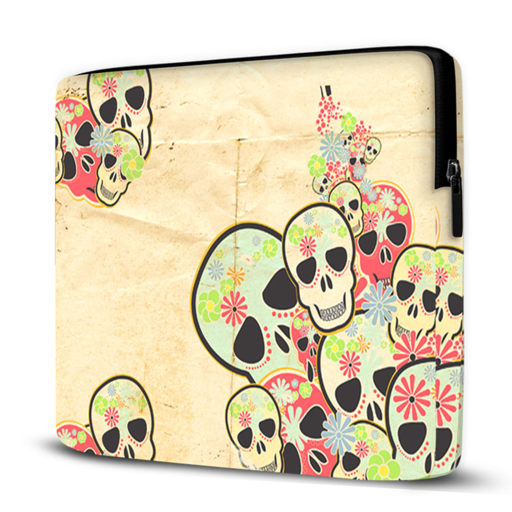 Porta notebook produzido em neoprene, acabamento com viés e fechamento com zíper, medidas 36 cm x 27 cm. Impressão em policromia.