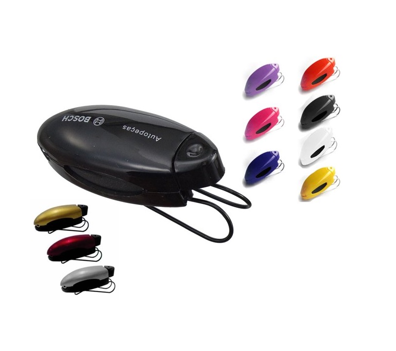 Porta óculos de plástico, medidas: 2,8 cm x 7,2 cm. Gravação serigrafia em 1 cor.