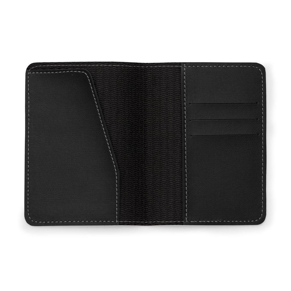 Porta passaporte Bidins em couro sintético, possui três compartimentos na lateral para cartões, medidas 20,5 cm x 13,7 cm. Gravação baixo relevo.