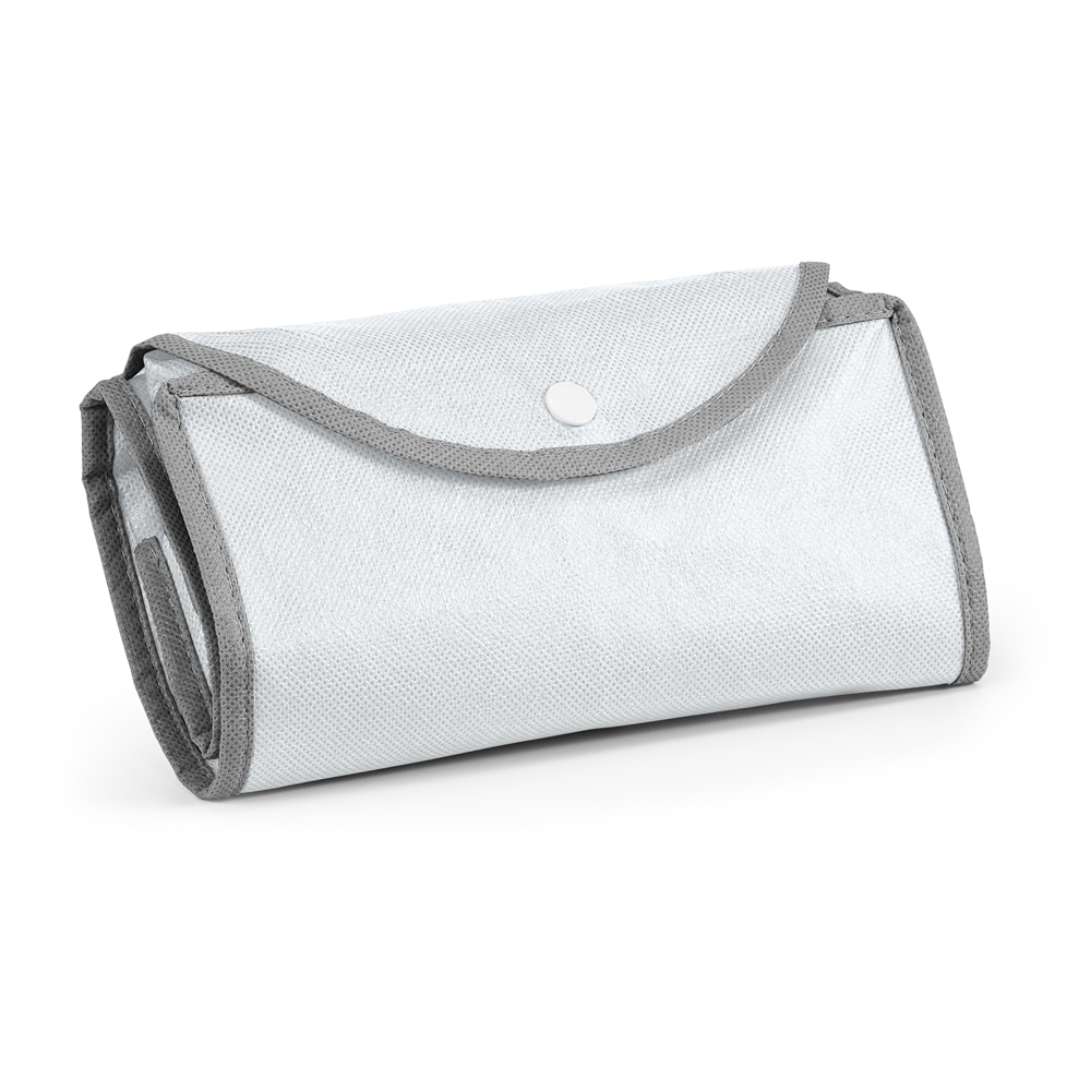 Sacola dobrável produzida em TNT non-woven gramatura 80 g/m², possui alças de ombro 65 cm comprimento, medidas dobrado: 200 x 120 mm| Aberto: 400 x 450 x 200 mm. Gravação serigrafia em 1 cor.