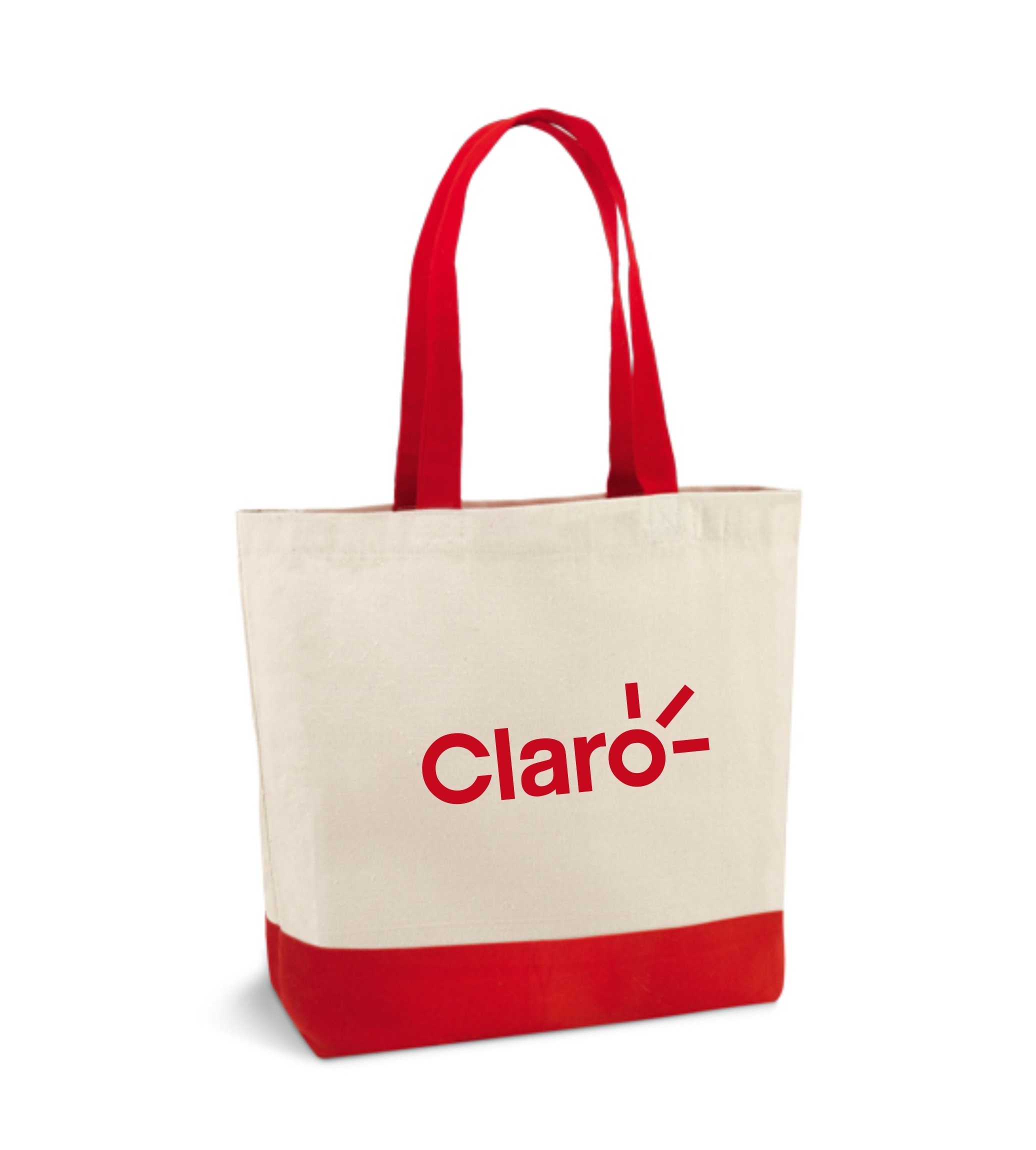 Sacola produzida em tecido 100% algodão com gramatura 280 g/m², possui bolso interior e alças de 65 cm, medidas 460 x 400 x 150 mm. Gravação serigrafia em 1 cor.