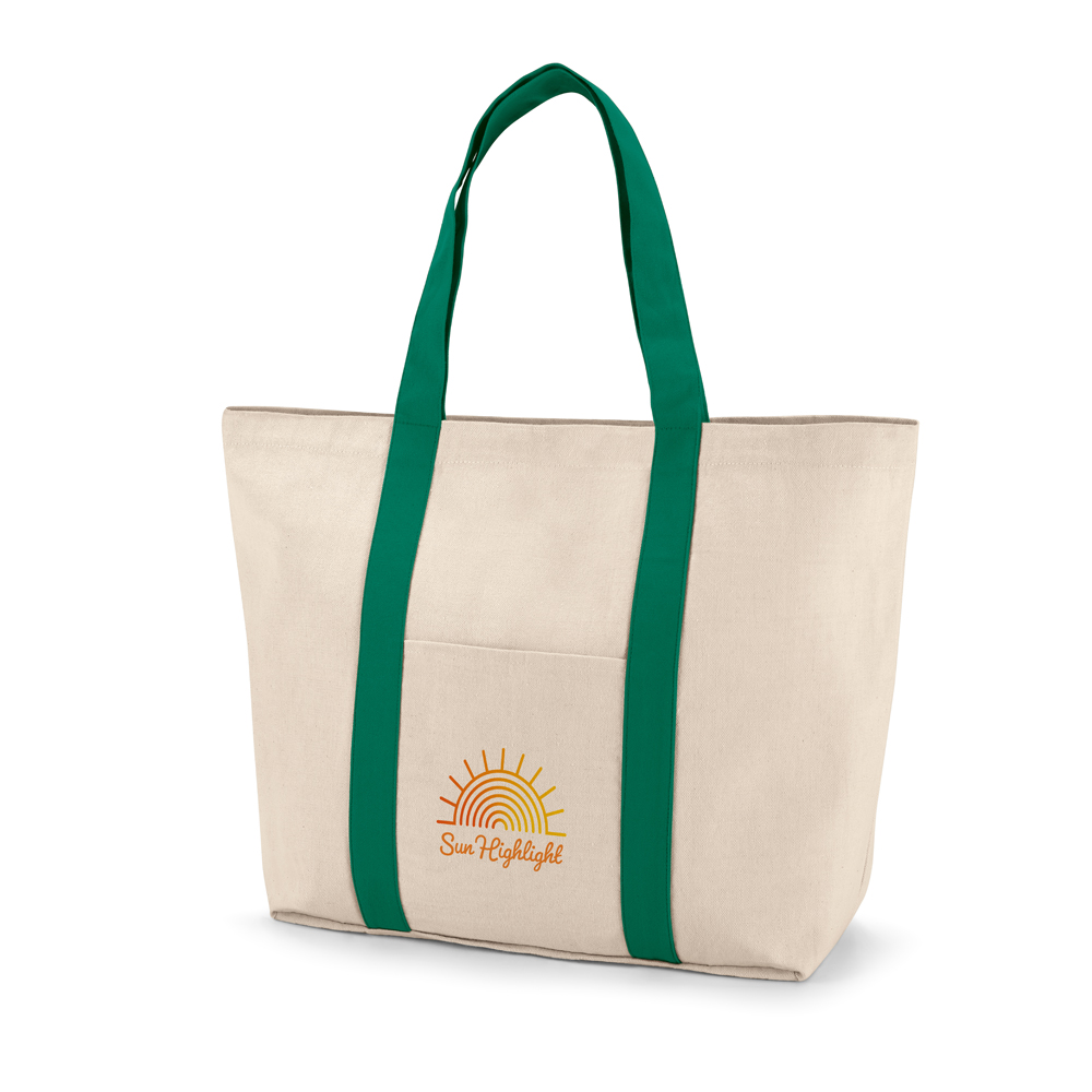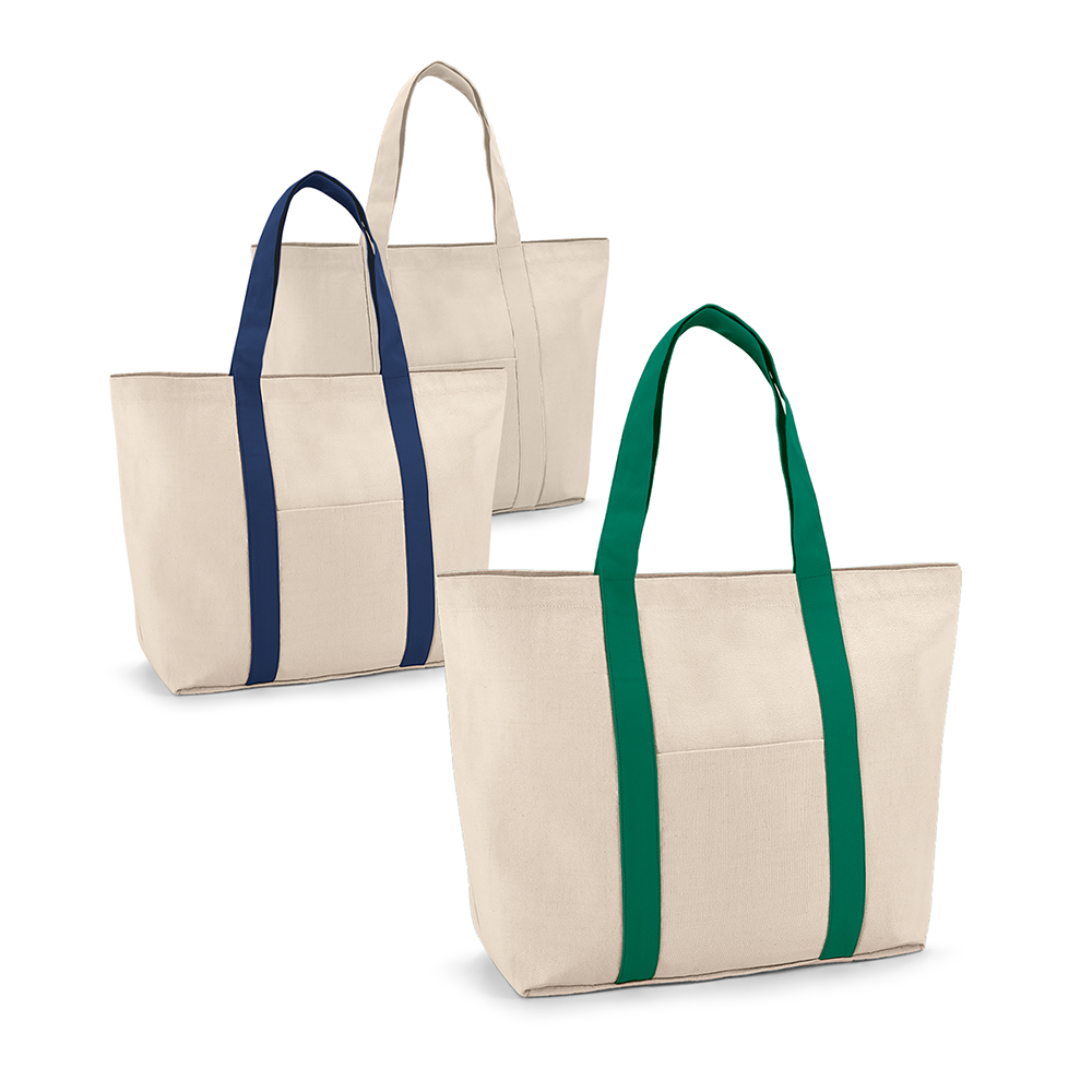 Sacola produzida em tecido100% algodão canvas, gramatura 280 g/m², possui bolso bolso frontal e bolso interior e fechamento zíper. Conta Com fecho magnético e alças de 60 cm comprimento, medidas 530 x 380 x 170 mm. Gravação serigrafia em 1 cor.