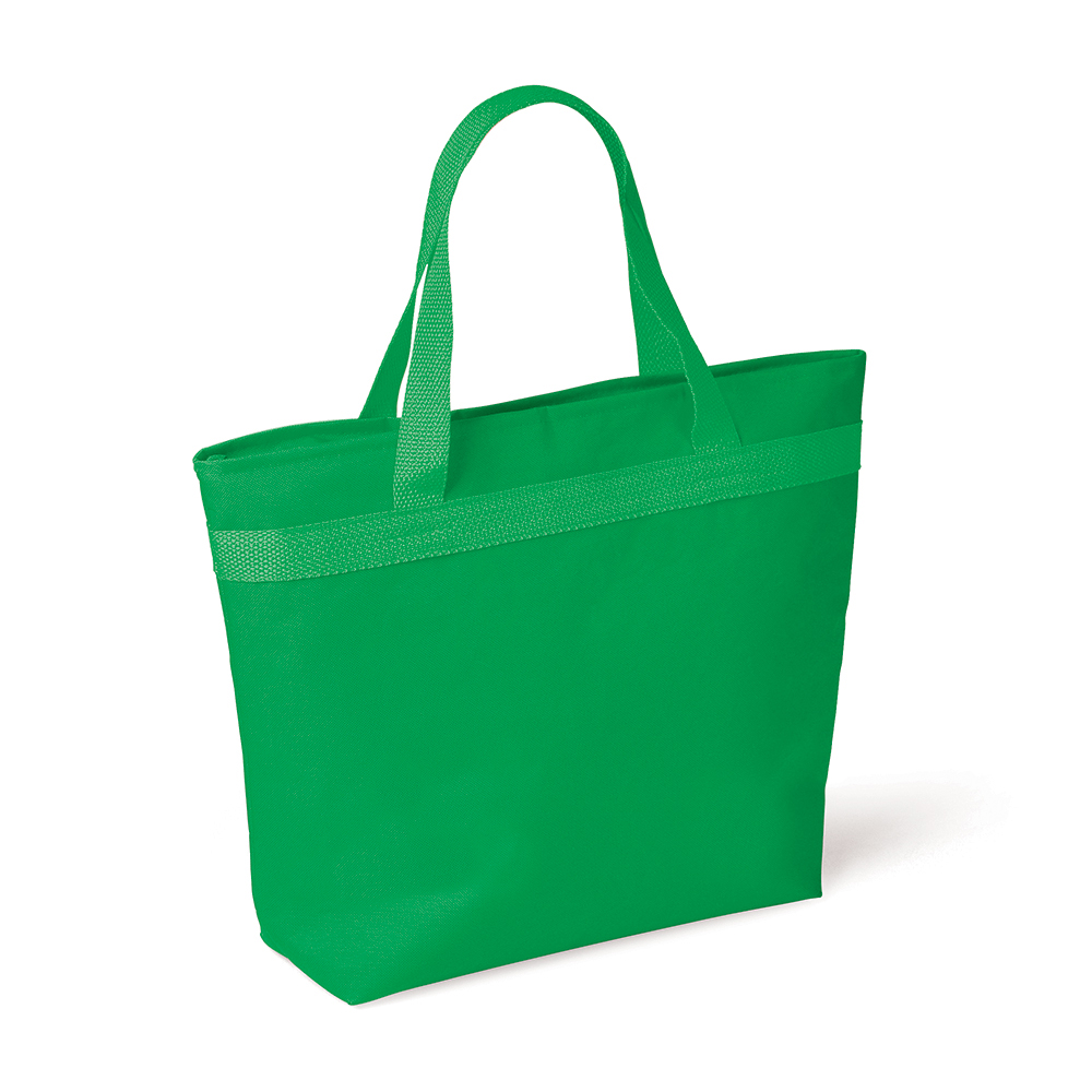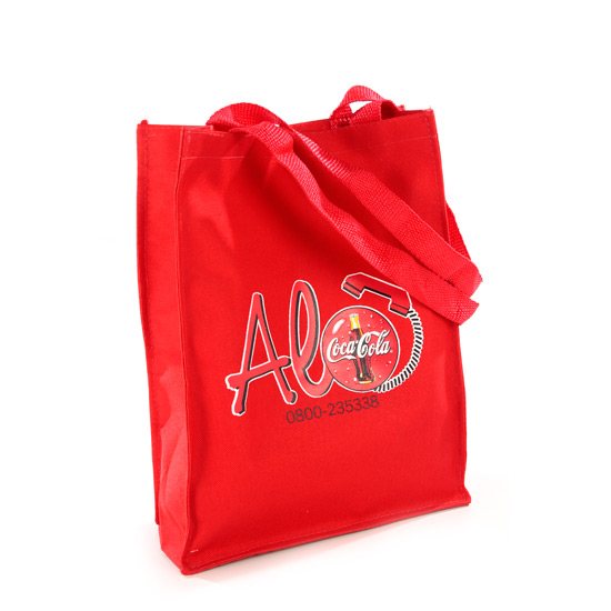 Sacola produzida em em poliéster medidas 40 X 30 cm, com alça de ombro. Gravação serigrafia em 1 cor.