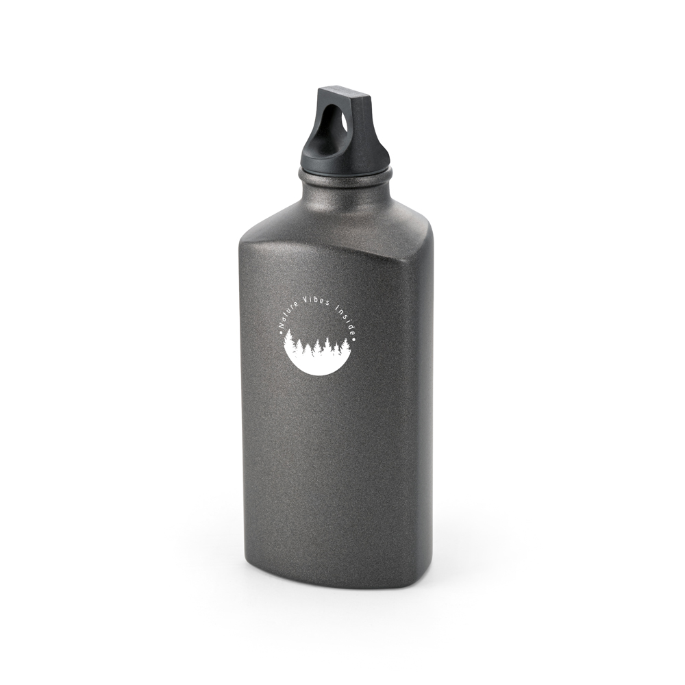 Squeeze em alumínio com tampa em PP, capacidade 600 ml, medidas Ø75 x 158 mm. Gravação a laser.