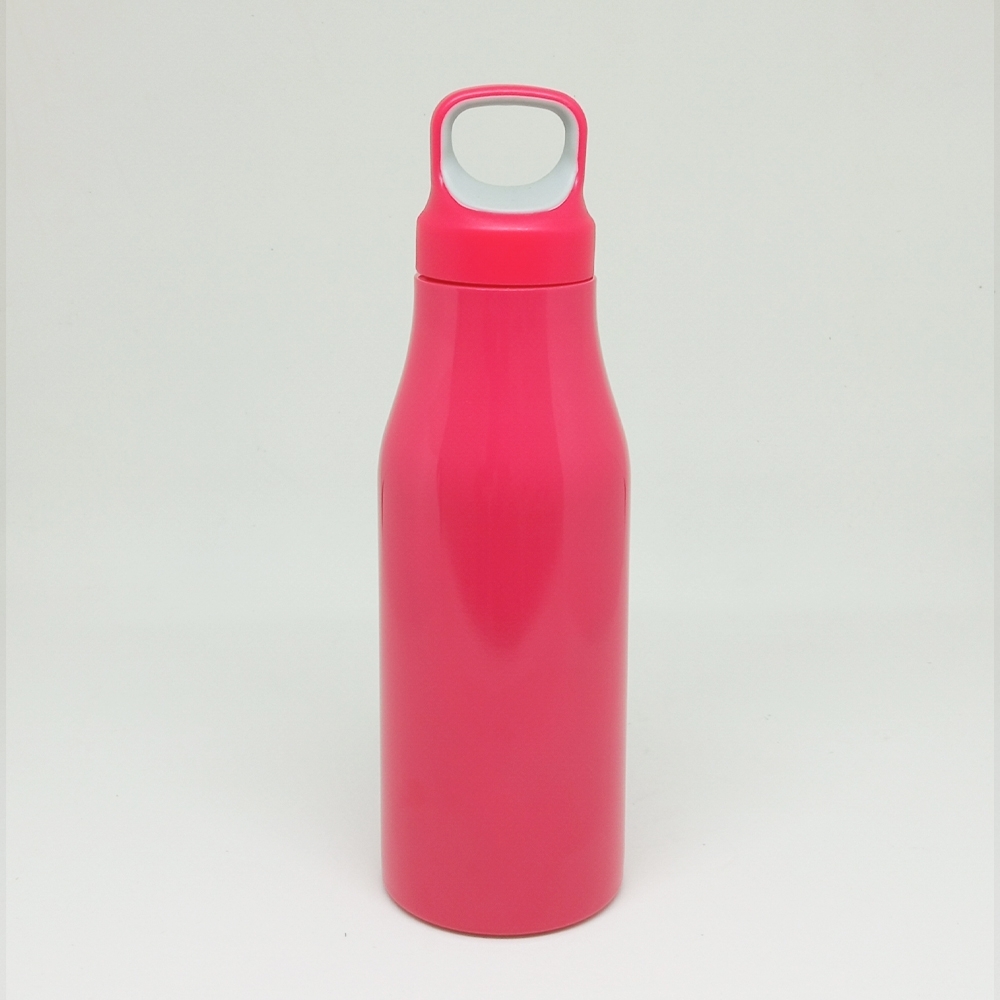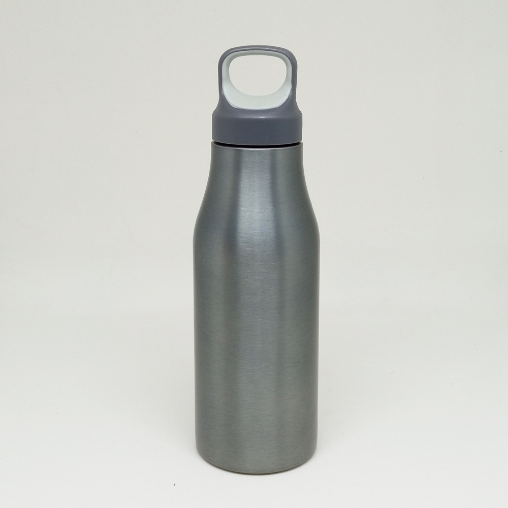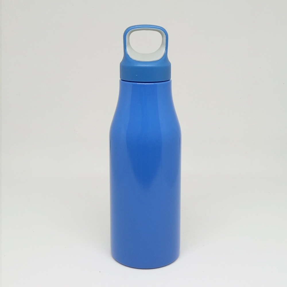 Garrafa 650ml em inox com tampa rosqueável com alça para transporte.