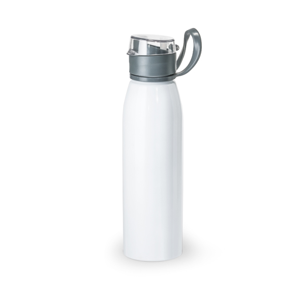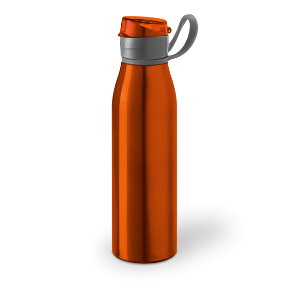 Squeeze em Alumínio capacidade até 650 ml, com tampa, medidas ø 65 x 250 mm. Gravação a laser.
