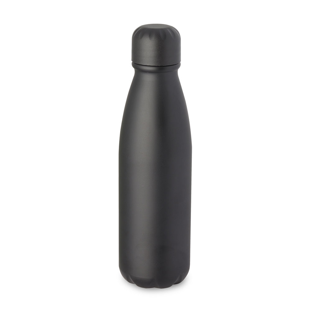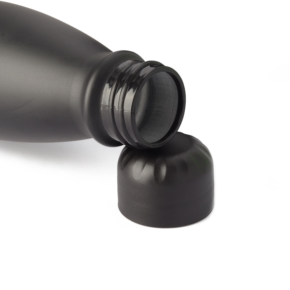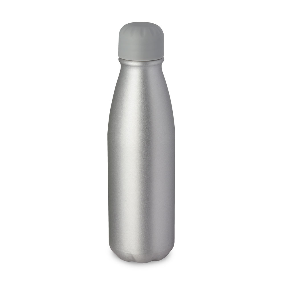 Garrafa em alumínio com tampa plástica colorida. Capacidade: 600ml, pintura fosca. Gravação a laser.