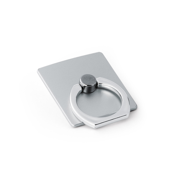 Suporte para celular produzido em plástico ABS com adesivo autocolante no verso, medidas 35 x 40 x 6 mm. Gravação serigrafia em 1 cor.